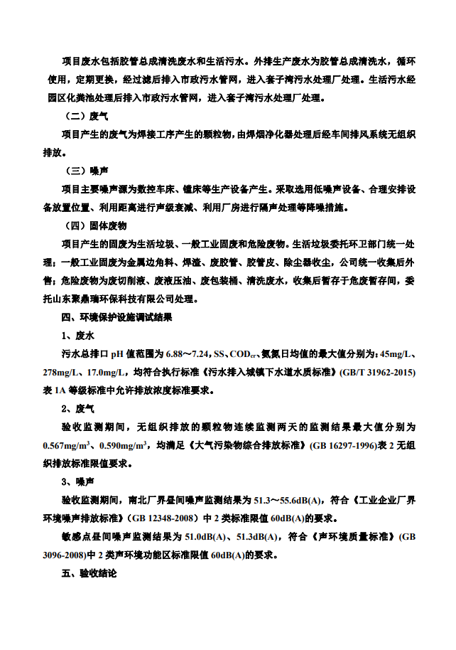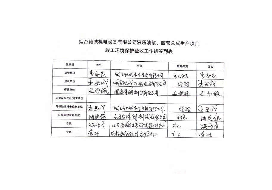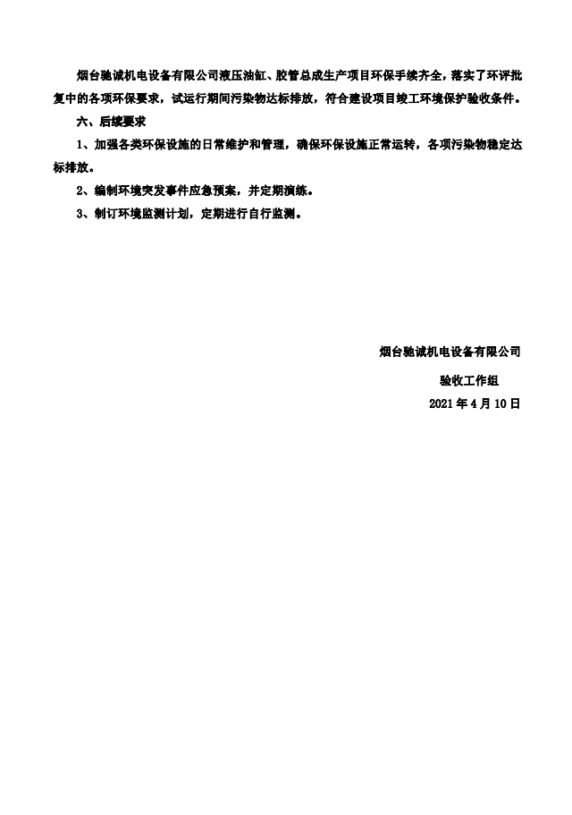 公示:驗收意見煙臺馳誠機電設(shè)備有限公司液壓油缸、膠管